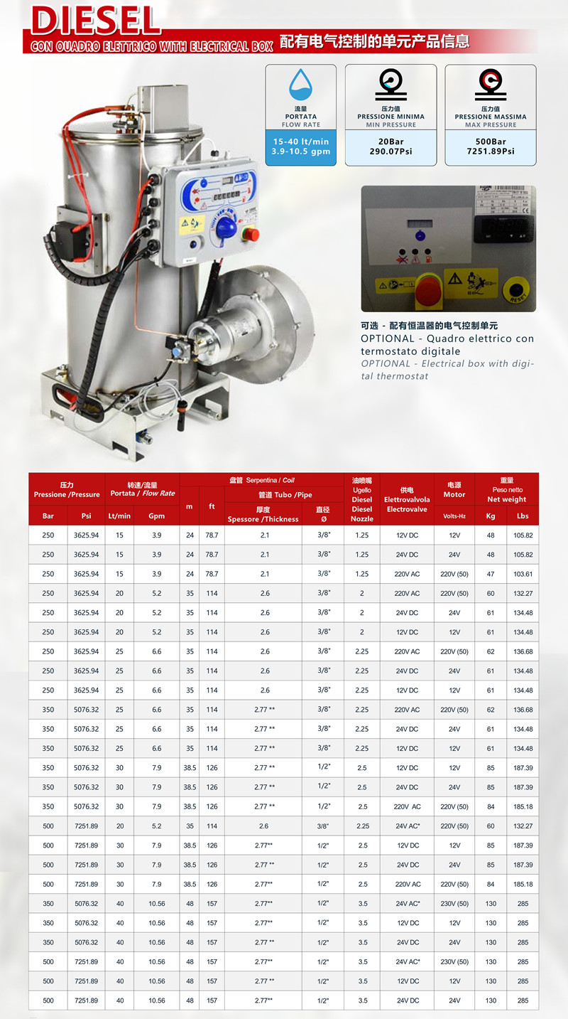 產(chǎn)品名稱:DOESEL WITH ELECTRICAL BOX 配有電氣控制的加熱單元